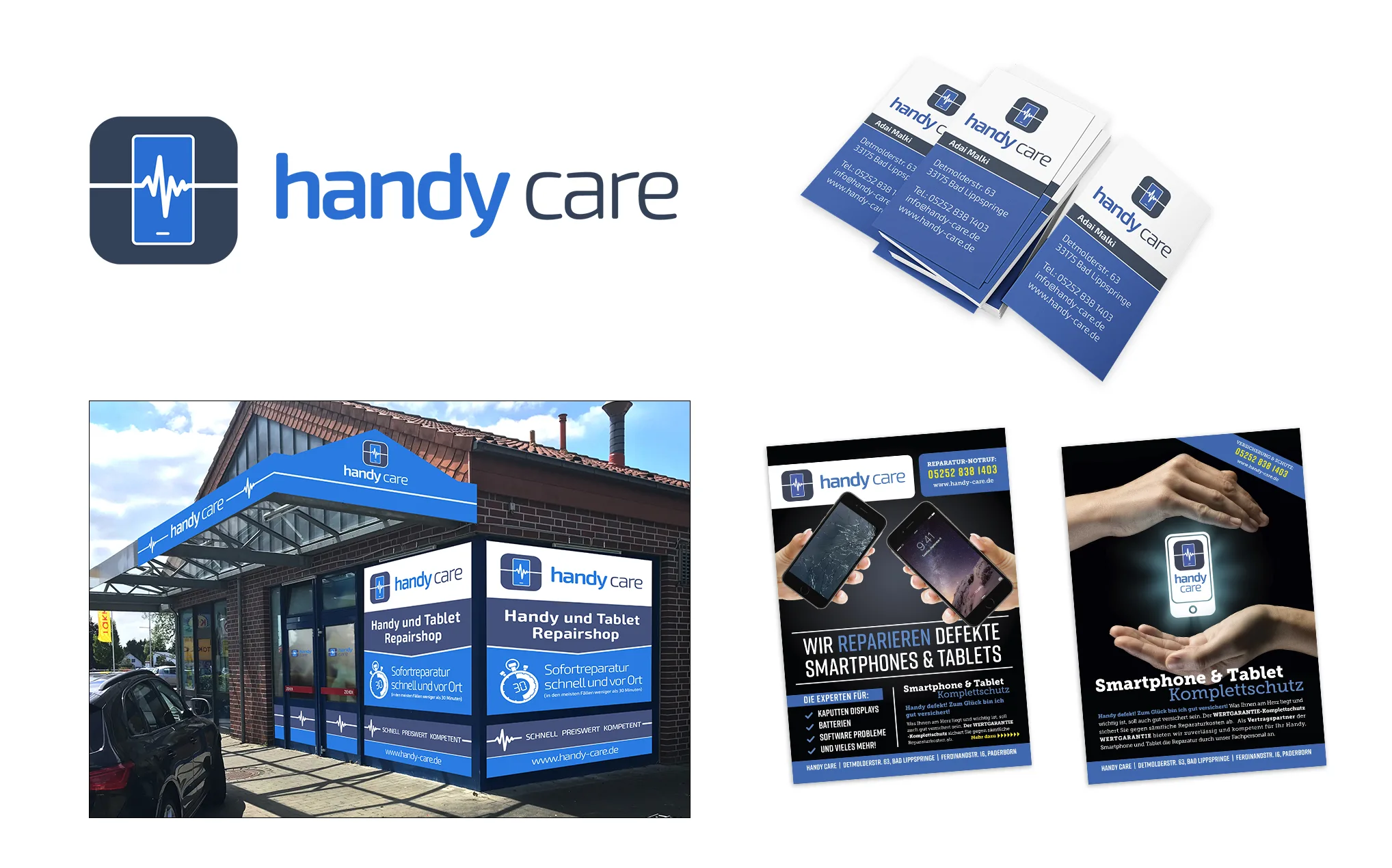 Für unseren Kunden Handy Care aus der Branche Handy-Reparatur durften wir ein modernes Logo-Design sowie ein ansprechendes Ladenfenster-Design entwickeln. Ziel war es, die Marke klar und einprägsam zu präsentieren und gleichzeitig die Sichtbarkeit und Wiedererkennung vor Ort zu stärken.