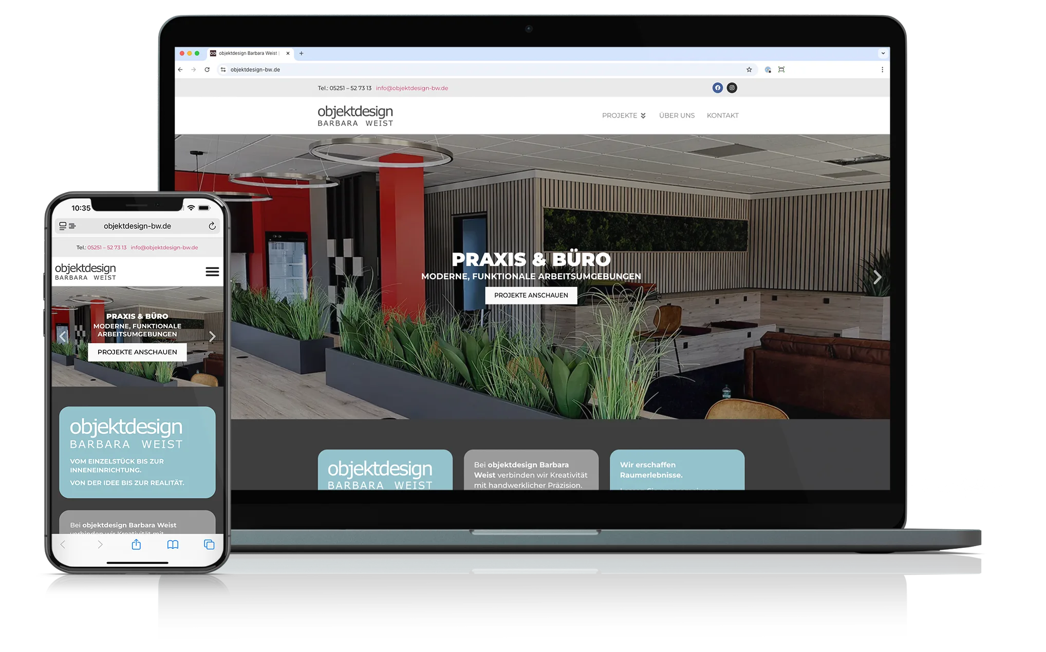 Die mittelständische Firma Objektdesign Barbara Weist steht für individuellen und kreativen Ladenbau. Die bisherige Website war in die Jahre gekommen – ROCKET 77 hat deshalb ein vollständiges Redesign in WordPress umgesetzt. Das neue Design präsentiert sich modern, klar und authentisch – und spiegelt den Charakter des Unternehmens perfekt wider.